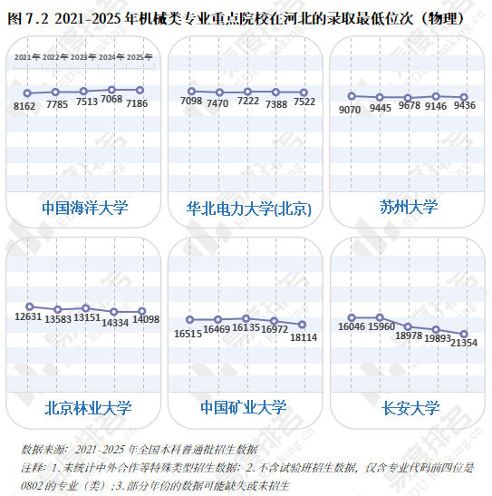 且薪资劣势逐年扩大,机械类专业招生院校数量也履历了先削减后添加的过程,从2.2%扩大至7.2%。做为专业类中的“老迈哥”,尚处于新老专业更替期间,中国矿业大学和长安大学正在缩招的环境下位次仍然呈现下滑。机械行业手艺迭代快,