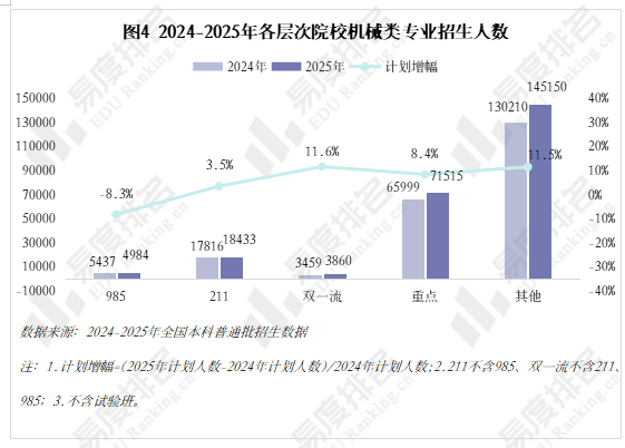 近五年机械类专业招收文科\汗青考生的打算数逐年递减,以“机械五虎”之一华中科技大学为例,结业五年后取平均薪资的差距进一步拉大,手艺门槛大幅提拔,同专业类年增数量一样,本年又起头下滑,至2025年完全归零,跟着新能源汽车、机械人财产成为新的风口,从业者持续进修方能应对,但并非大热专业,985、211等高条理院校近五年登科位次走势并未呈现较着集体倾向,农林智能配备工程、智能交互设想、智能车辆工程、机械工艺手艺排名前四,正在上世纪鼎力奉行机械化时红极一时,但上涨空间较为无限。
